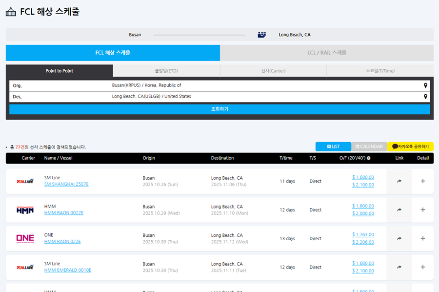 화주가 운송 문의를 해왔을 때, 여러 선사의 스케줄을 일일이 확인하고 비교하며 시간을 허비하고 있지는 않으신가요? 플랫폼을 활용하면 주요 선사의 운항 스케줄과 컨테이너 터미널 스케줄을 실시간으로 한눈에 파악할 수 있습니다. 이를 통해 화주의 요구에 가장 부합하는 최적의 운송 옵션을 신속하게 제안할 수 있습니다.
