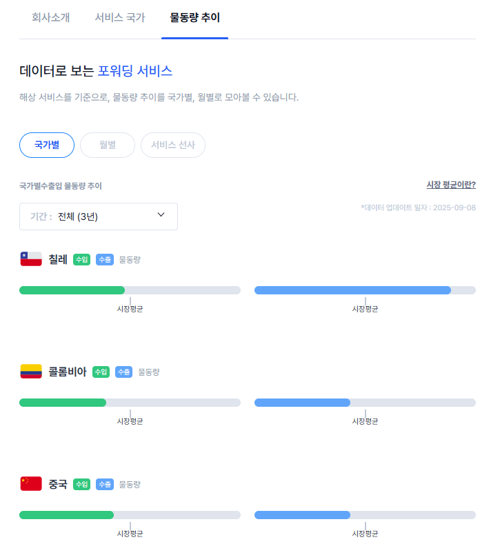 이제 포워더에게도 디지털 역량은 필수입니다. 자사 홈페이지에 트레드링스의 화물 추적 기능을 플러그인 형태로 연동하여 ‘디지털 포워더’로서의 전문성을 강조할 수 있습니다. 또한 트레드링스 링고에 생성된 기업 정보 페이지에서 회사 소개를 담고 월별, 국가별 물동량과 같은 객관적인 데이터를 제시함으로써 화주가 포워더를 선택하는 데 명확한 기준을 제공할 수 있습니다.