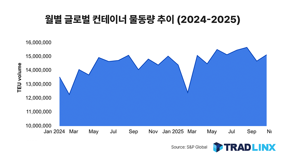 실제로 10월 북미 수입 물동량은 전년 대비 6.7%나 급감했고, 아시아발 유럽행 수출 역시 2월 이후 처음으로 3% 감소세로 돌아섰습니다.