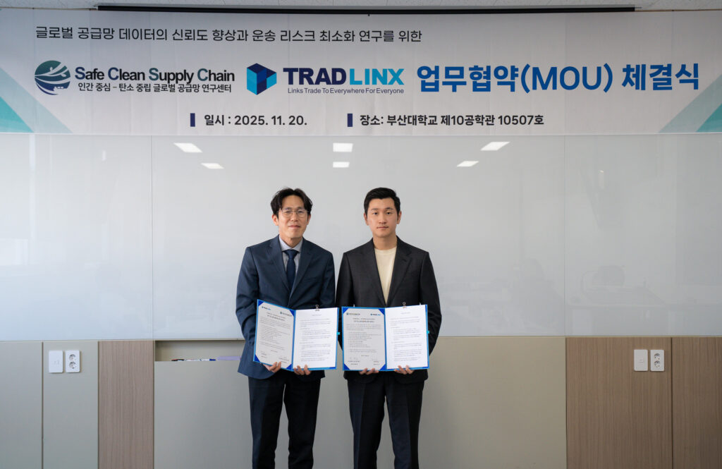 국내 최대 수출입 물류 플랫폼 트레드링스(대표 박민규, www.tradlinx.com)와 부산대학교 인간 중심 – 탄소 중립 글로벌 공급망 연구센터(SCSC연구센터, 센터장 배혜림)가 전략적 업무협약(MOU)을 체결하고 AI 기반 공급망 예측 모델 공동 개발 및 상용화에 나선다고 21일 밝혔다.