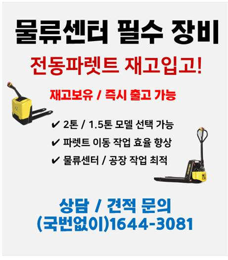 물류센터나 공장에서 파렛트를 이동할 때 아직도 수동 핸드파렛트를 사용하고 계신가요? 초기에는 큰 차이를 느끼지 못하지만 작업량이 늘어나면 작업자 피로도, 이동 속도, 작업 효율에서 큰 차이가 발생합니다. 특히 하루 수백 번 이상 파렛트를 이동해야 하는 환경이라면 전동 파렛트 트럭 도입 여부가 생산성을 크게 좌우합니다. 오늘은 물류센터와 공장에서 많이 사용하는 전동 파렛트 트럭 선택 기준과 함께 현재 즉시 출고 가능한 장비 재고 정보도 함께 소개해보겠습니다.